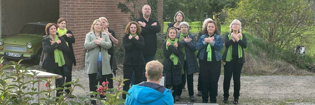 Nach langer Präsenzproben-Abstinenz durften wir uns ab Ende April dieses Jahres wieder zu Liveproben treffen – alte Kontakte konnten aufgefrischt und gepflegt werden. In diesem Zusammenhang haben wir auch die Kommunikation mit Margit, unserer langjährigen Sopranistin, wieder aufgenommen. Zurzeit kann sie aus gesundheitlichen Gründen nicht mehr an den Präsenzproben teilnehmen. Als Zeichen für unsere Verbundenheit und Dank für Ihre Treue zu unserem Chor kam die Idee auf, ihr ein persönliches Ständchen zu bringen. Margit stimmte sofort und erfreut zu.