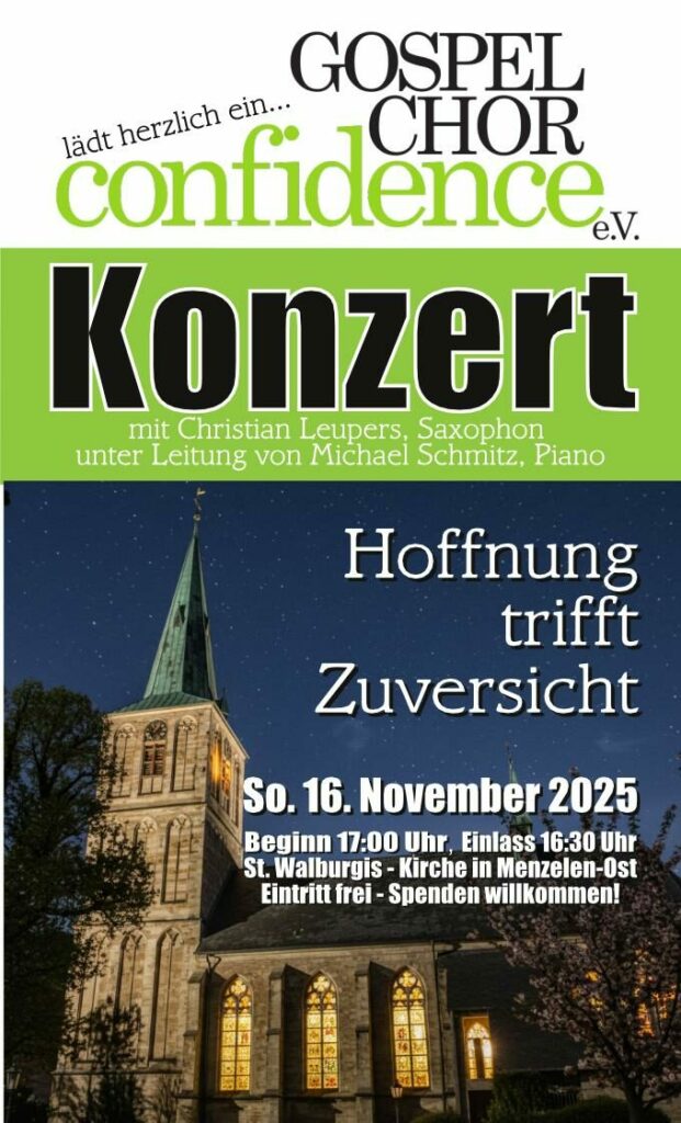 es ist wieder soweit, dass wir Sie und Euch herzlich zu einem Konzert in unsere Heimatgemeinde und Kirche nach Menzelen einladen dürfen.
